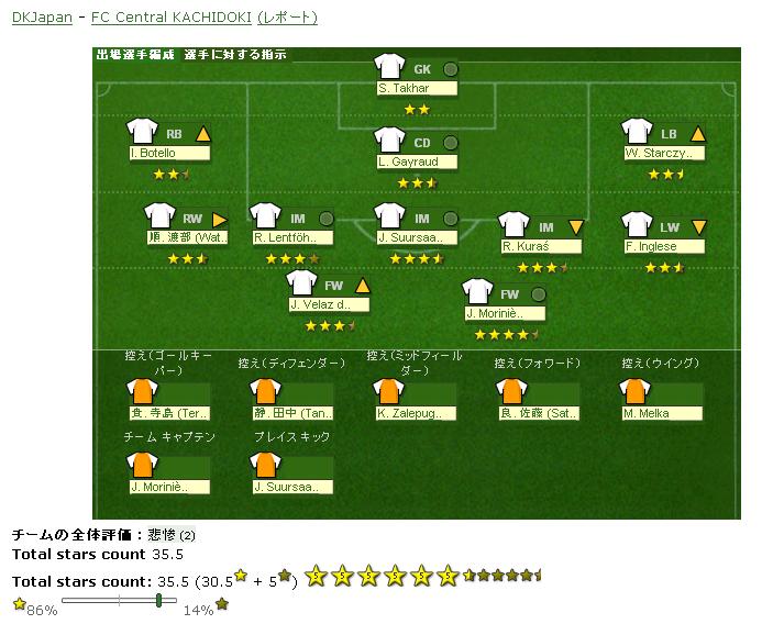 WGとキーパーは不満でDFは平均の選手を使っています。