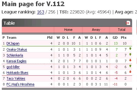 ちなみに人がいないチームばかりの対戦をしていますので、なんとかV112では首位に立っています^^